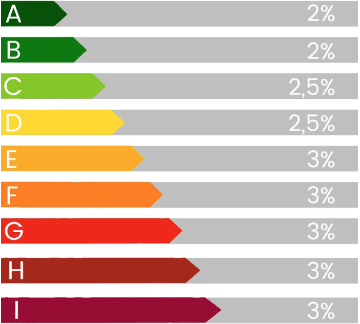 In dieser Tabelle ist der Provisionssatz der Agentur angegeben, der im Einklang mit der Umweltleistungsklasse der Immobilie angewendet wird.